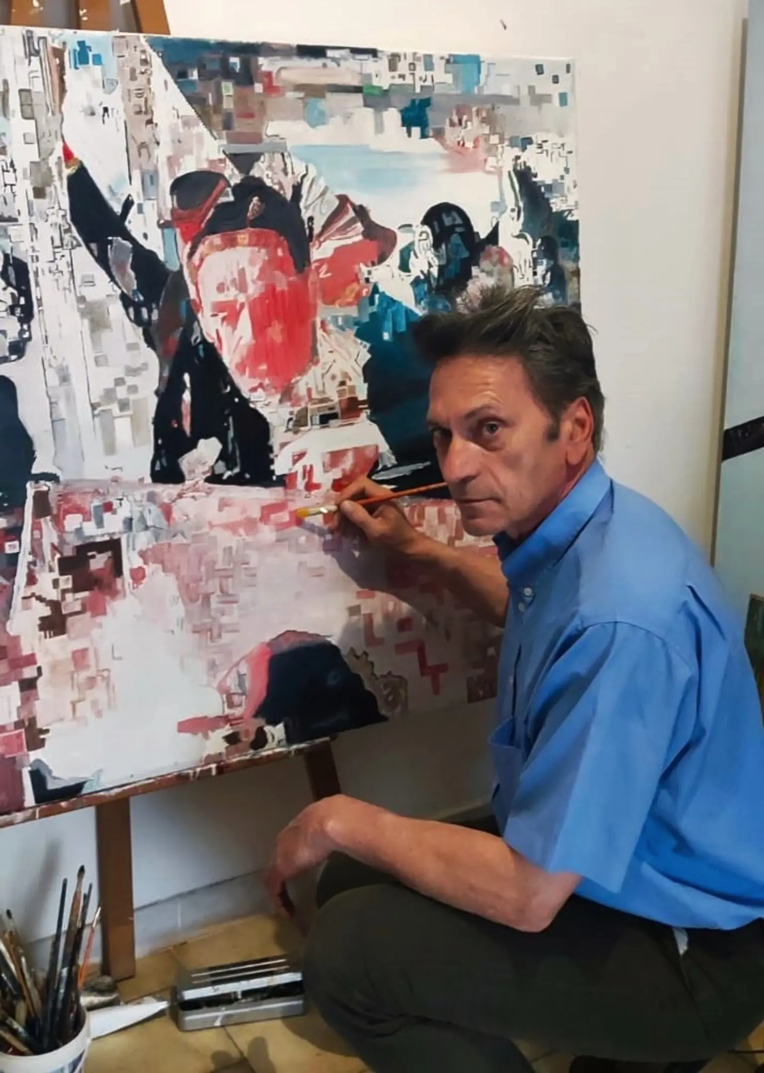 Franck Alagna est un artiste pour qui la peinture dépasse la simple recherche esthétique. À travers ses toiles, il interroge l’histoire, l’humanité et les contradictions de notre époque. Curieux du passé, attentif au présent et lucide sur l’avenir, il observe les hommes avec une sensibilité mêlant révolte, tendresse et espoir. Son œuvre, entre engagement et émotion, témoigne d’une réflexion profonde sur la condition humaine, où l’art devient un miroir de nos rêves comme de nos dérives. Influencé par la musique, la philosophie hippie et les grands bouleversements du monde, Franck Alagna peint autant avec son esprit qu’avec son cœur.