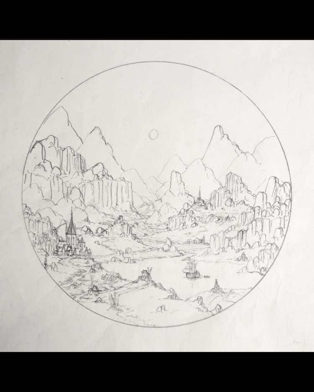 Mes paysages fonctionnent comme des fractales. Ce que l’on voit au premier plan se répète dans le second, et encore au loin. Comme si la même structure se reproduisait à l’infini. Cela crée une continuité, un rythme, une forme d’éternité. J’aime montrer que les choses se répètent, comme le temps qui passe : les mêmes motifs, mais à d’autres échelles. Si je pouvais peindre une fresque de 10 mètres, je ferais la même chose, mais en ajoutant encore plus de détails, encore plus de chemins, de rivières, de montagnes.