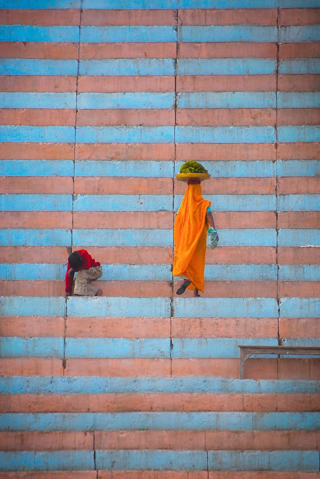 Je n’ai pas une préférence, car tout raconte quelque chose de moi et c’est peut-être ce tout qui en dit le plus. Chaque œuvre est une étape, un franchissement, un fragment de vie nourris de rencontres et d’émotions. Symboliquement les portraits des sadhus photographiés en Inde sont des moments forts ! la femme indienne vêtue de son sari orange entrain de gravir avec détermination les gaths à Varanasi est l’expression parfaite du courage, du non-renoncement. Elle m’inspire toujours autant de réflexion quand je la regarde car son message est puissant : « L’impossible recule toujours quand on avance vers lui »